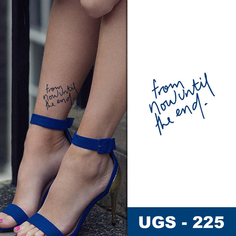 Minimaliste, élégant et profondément symbolique, ce tatouage semi-permanent affiche la phrase manuscrite "from now until the end." (« à partir de maintenant jusqu’à la fin »). Il incarne l’engagement, la persévérance et la fidélité à une promesse, un rêve ou une personne chère. Parfait pour celles et ceux qui souhaitent marquer une conviction intérieure ou une histoire personnelle.
