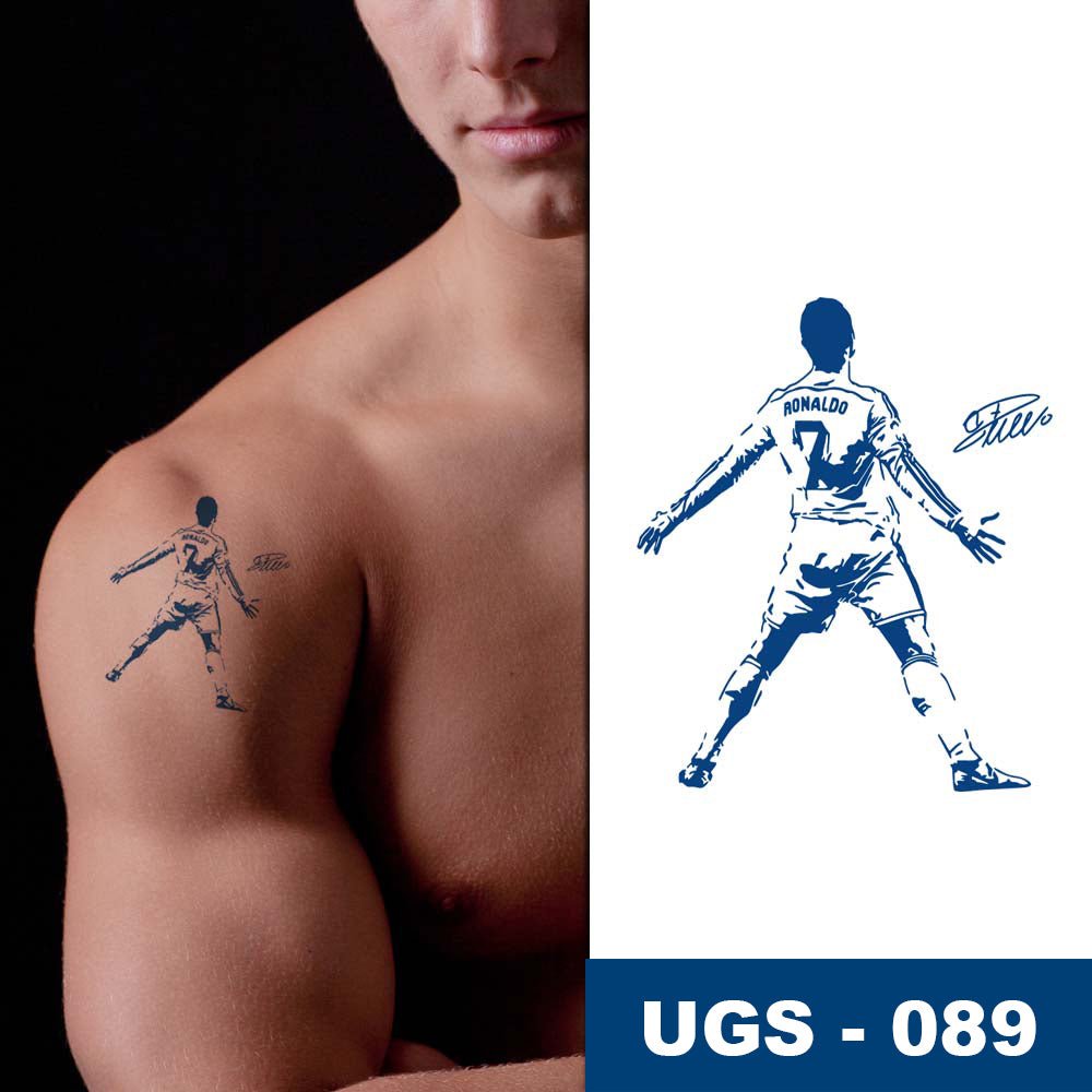 Affichez l'aura d'un gagnant avec ce tatouage représentant la célébration mythique de Cristiano Ronaldo, les bras ouverts au monde. Ce n'est pas qu'une image de football, c'est le symbole de la décision, de la confiance totale et de la puissance que l'on obtient par le travail acharné. Ce motif incarne le triomphe sur l'adversité et la fierté d'avoir atteint l'excellence. Portez-le comme un rappel de votre propre potentiel illimité.