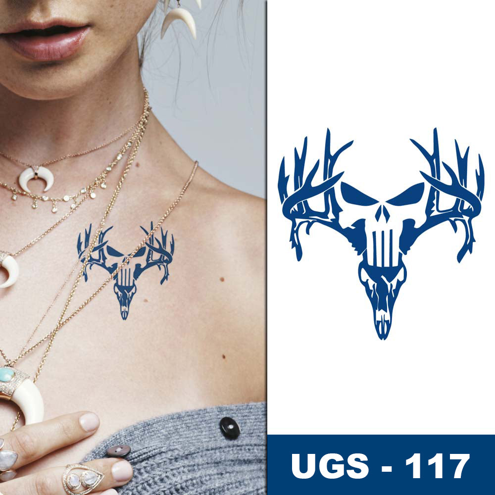Ce tatouage met en valeur un crâne stylisé de cerf avec ses bois imposants, fusionnant puissance animale , mystère et énergie tribale . Symbole de nature indomptée et de résilience, il s'adresse à ceux qui veulent afficher un esprit libre , en harmonie avec les forces de la terre . Ce design attire les regards audacieux et transforme la peau en totem de force et d'authenticité .