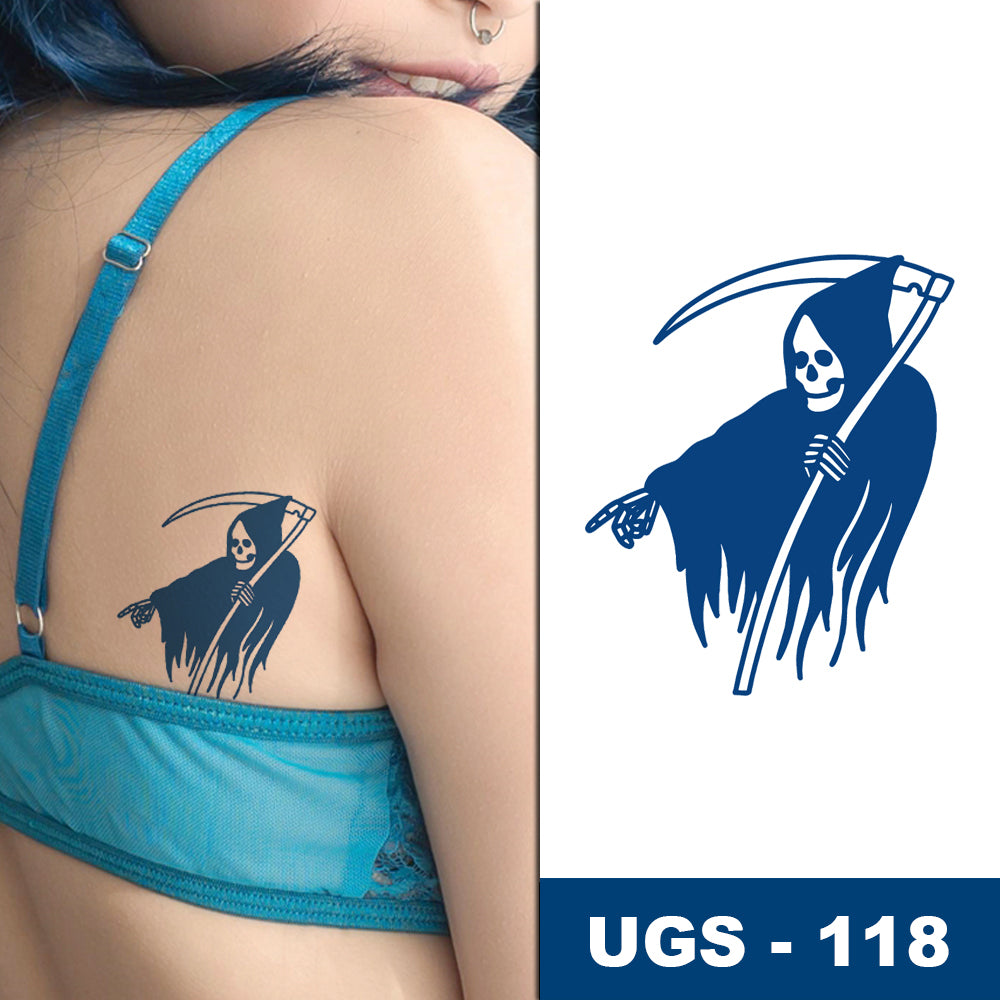 Le tatouage “La Faucheuse” symbolise la puissance, le mystère et la conscience du destin. Avec sa silhouette sombre et sa faux acérée, il représente la maîtrise du temps et l’acceptation du cycle de la vie. Ce design marquant, au tracé net et élégant, attire ceux qui n’ont pas peur d’affirmer leur côté obscur et leur force intérieure. Parfait pour un style gothique, audacieux ou simplement symbolique.
